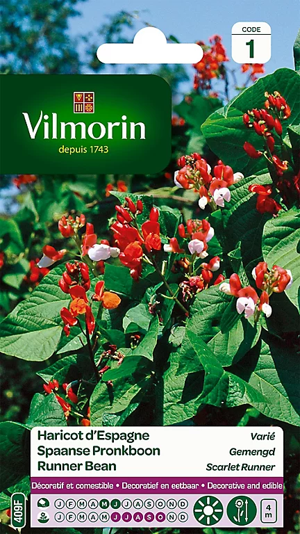 Plante grimpante au feuillage abondant dont les longues gousses plates sont comestibles. Consommez-les jeunes comme des mangetouts.Les Haricots d’Espagne prĂ©fèrent les bonnes terres franches. Les grandes et magnifiques fleurs rouges Ă©carlates, orangĂ©es et blanches sont très dĂ©coratives